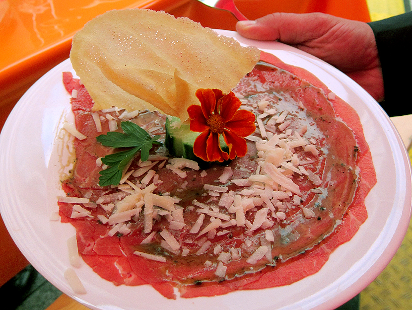 Gasthaus Weiß: Getrüffeltes Carpaccio vom Weiderind in einem Balsamico-Olivendressing mit gehobeltem Parmesan. Nicht gegessen, nur fotografiert. Üppig! Die mahlzeit verschlang Sven Merten, Geschäftsfüherer der Überblick Medien GmbH.