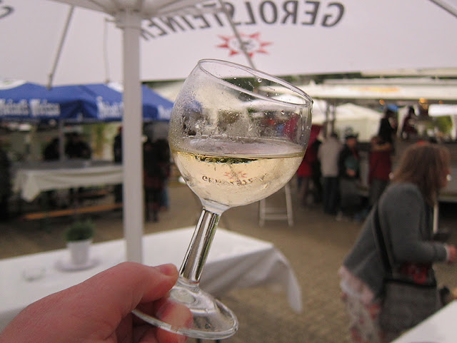 Als der Genießer so gegen achtzehn Uhr eintrudelte, versuchte auf der Bühne der Sänger Riccardo Doppio mit sonnigen italienischen Weisen einige unentwegte Besucher aufzuheitern versuchte, gaben sich die fünf teilnehmenden Gastronomen gelassen.